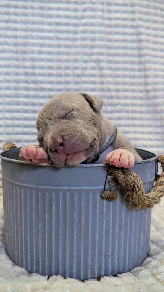 Ein ruhiger Start ins Leben der kleinen American Bully XL Welpen
