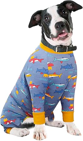 Anzeige//Hunde-Rehabilitationsanzug nach Operationen, weiche, langärmelige Hunde-Neuter-Shirt, konische Alternativen, verhindert Lecken, chirurgische Einteiler für große und mittelgroße (2XL, Hai)